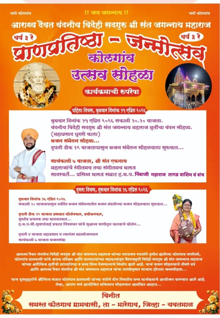 श्री संत जगन्नाथ महाराज प्राणप्रतिष्ठा व जन्मोत्सव सोहळ्याचे आयोजन